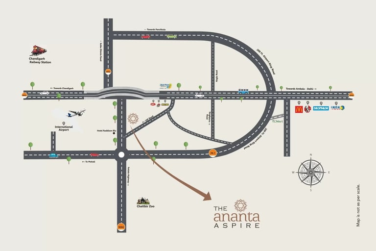 Ananta Aspire is not just a residential project, it is a statement of luxury in Zirakpur. Rising high with 17 floors across 34,050 sq. yards, it offers spacious 3 BHK, 3+1, and 4+1 residences designed for families who desire the perfect balance of style and comfort. Every corner of Ananta Aspire reflects elegance – from its modern architecture and premium interiors to its world-class amenities that promise a lifestyle beyond compare.