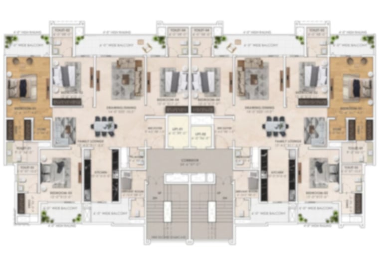 Expansive luxury residences with four bedrooms and an additional room, redefining high-rise living.